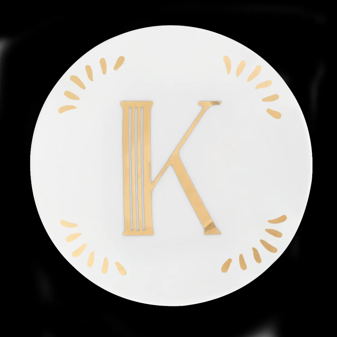 Piattino Lettera K In Porcellana Decalco Oro – Adatto Per Lavastoviglie Max 250 Lavaggi – Non Adatto Per Microonde
