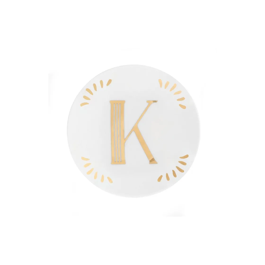 Piattino Lettera K In Porcellana Decalco Oro – Adatto Per Lavastoviglie Max 250 Lavaggi – Non Adatto Per Microonde
