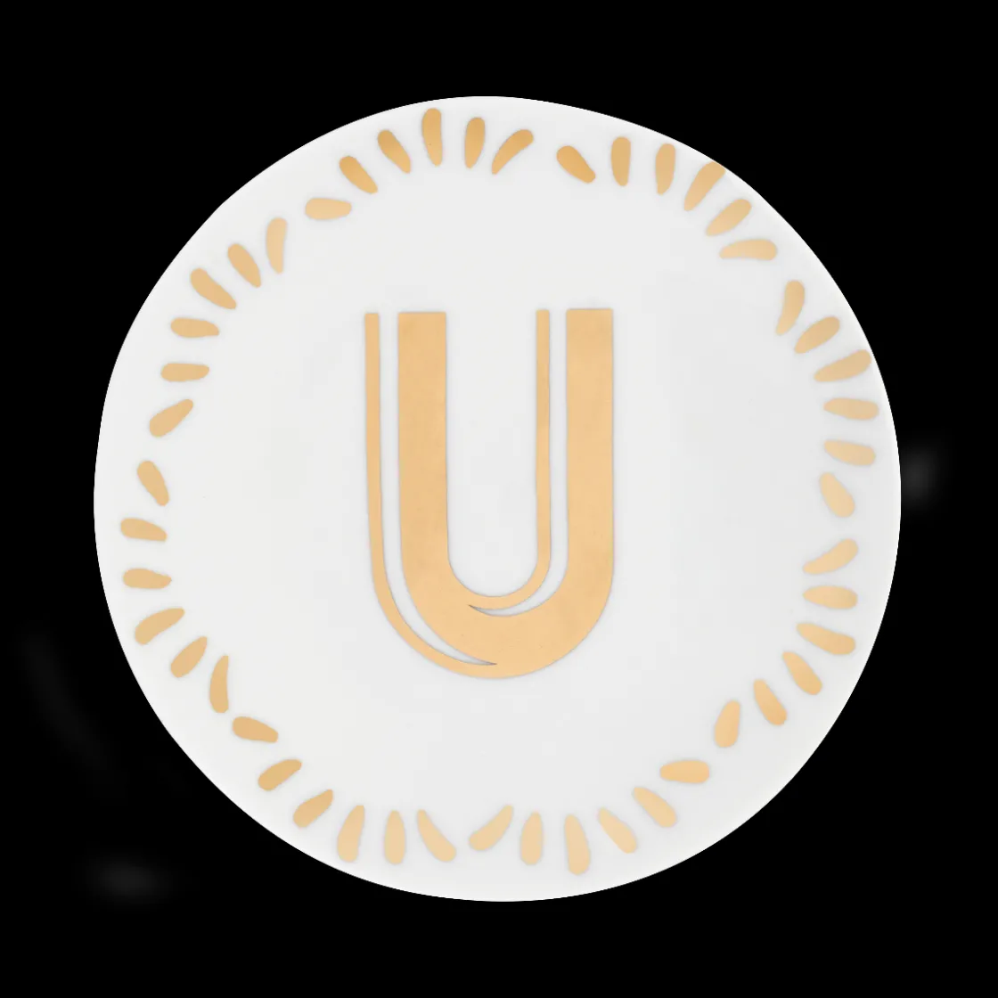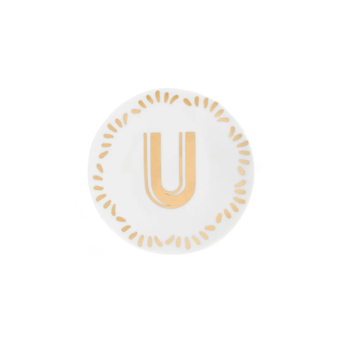 Piattino Lettera U In Porcellana Decalco Oro – Adatto Per Lavastoviglie Max 250 Lavaggi – Non Adatto Per Microonde