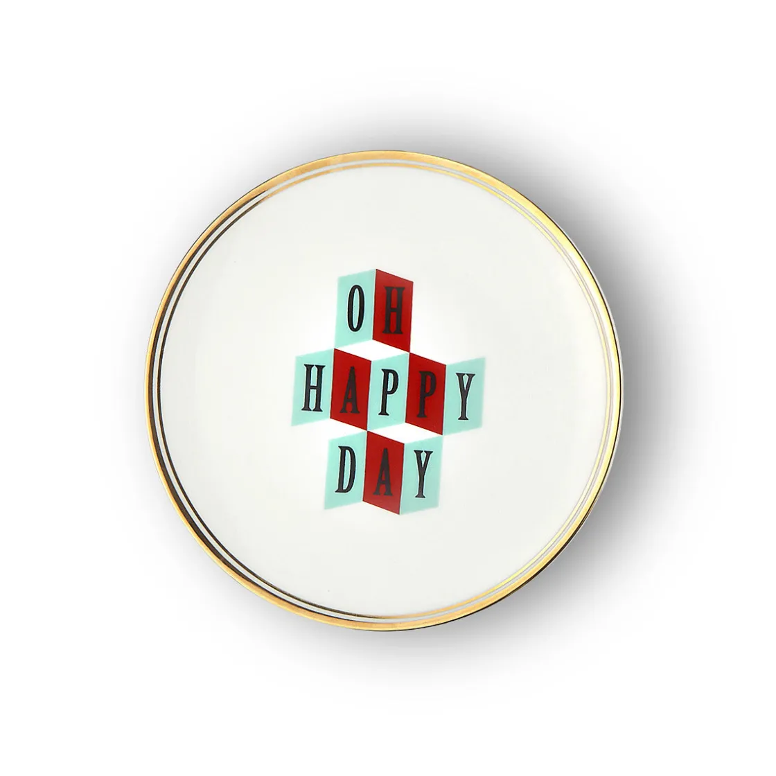 Piatto Oh Happy Day In Porcellana Decalco Bordo Oro – Adatto Per Lavastoviglie Max 250 Lavaggi – Non Adatto Per Microonde