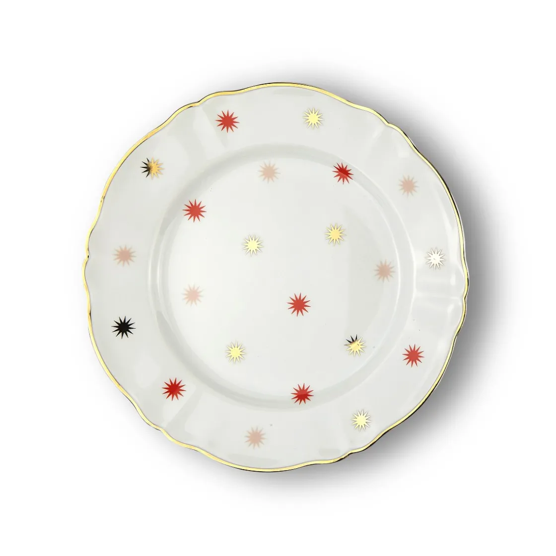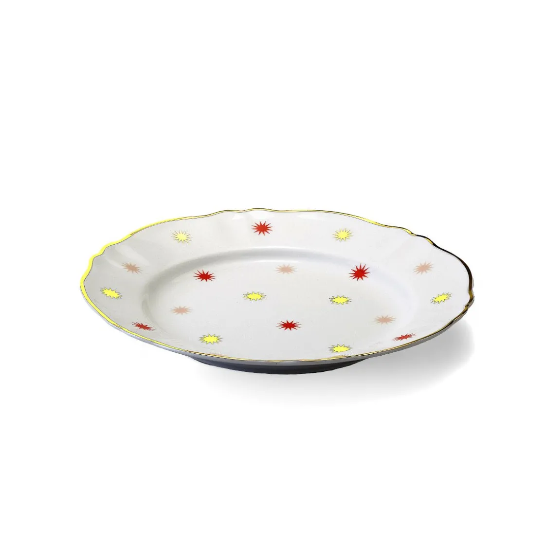 Piatto Piano In Porcellana Decalco Colorate Dettagli Oro · Adatto Per Lavastoviglie Max 250 Lavaggi · Non Adatto Per Microonde
