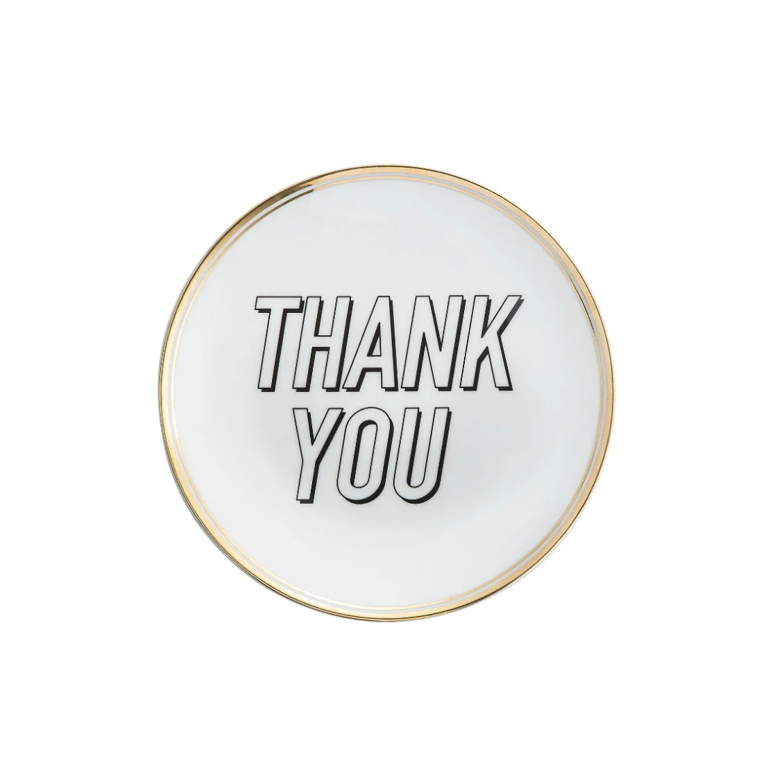 Piatto Thank You In Porcellana Decalco Bordo Oro – Adatto Per Lavastoviglie Max 250 Lavaggi – Non Adatto Per Microonde