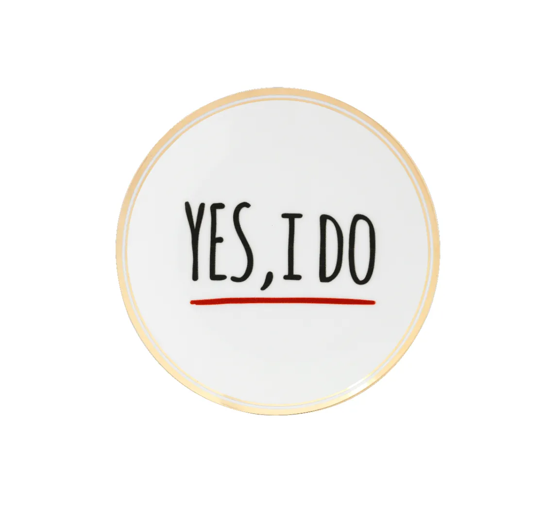Piatto Yes, I Do In Porcellana Decalco Bordo Oro – Adatto Per Lavastoviglie Max 250 Lavaggi – Non Adatto Per Microonde