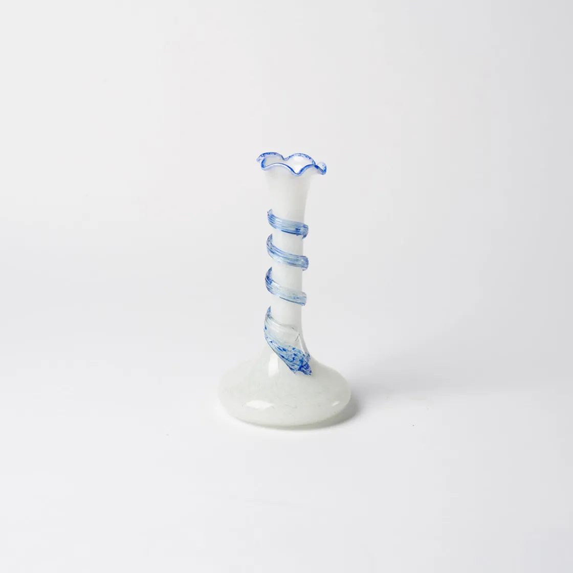 Vasetto In Vetro Bianco Con Decorazioni Azzurre (Preloved)