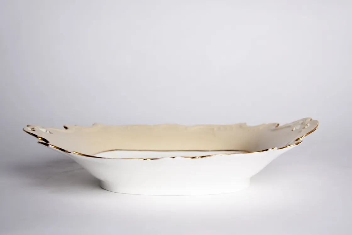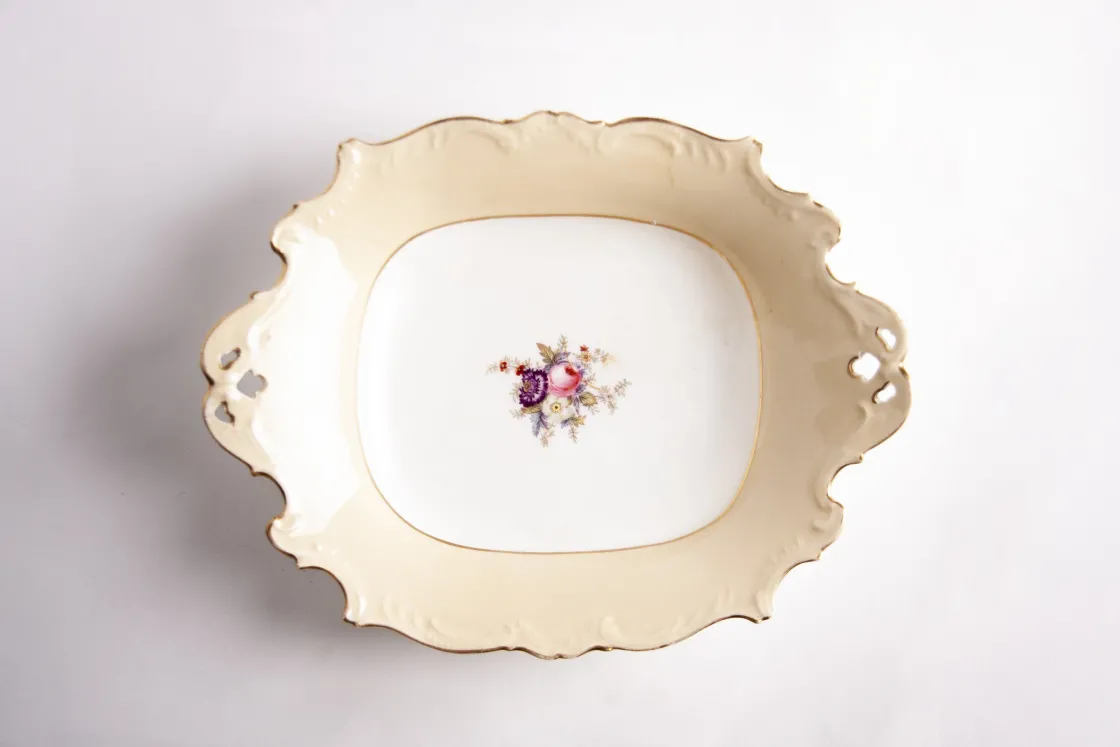 Centrotavola Ceramica Con Bordo Beige Smerlato E Decoro Rose (Preloved)