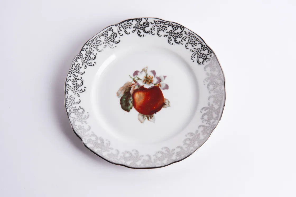Bianco, Decoro Frutta E Dettagli Platino